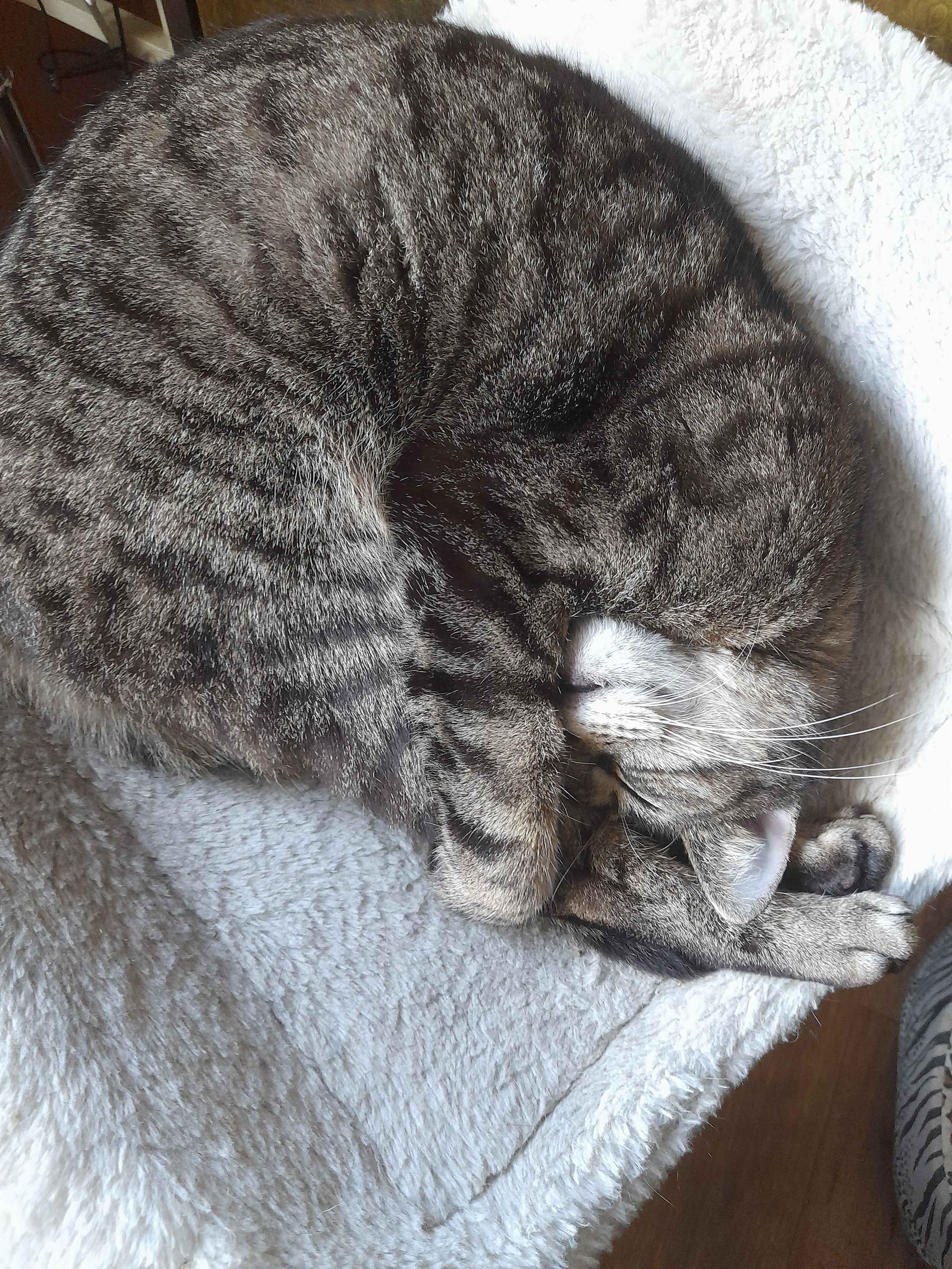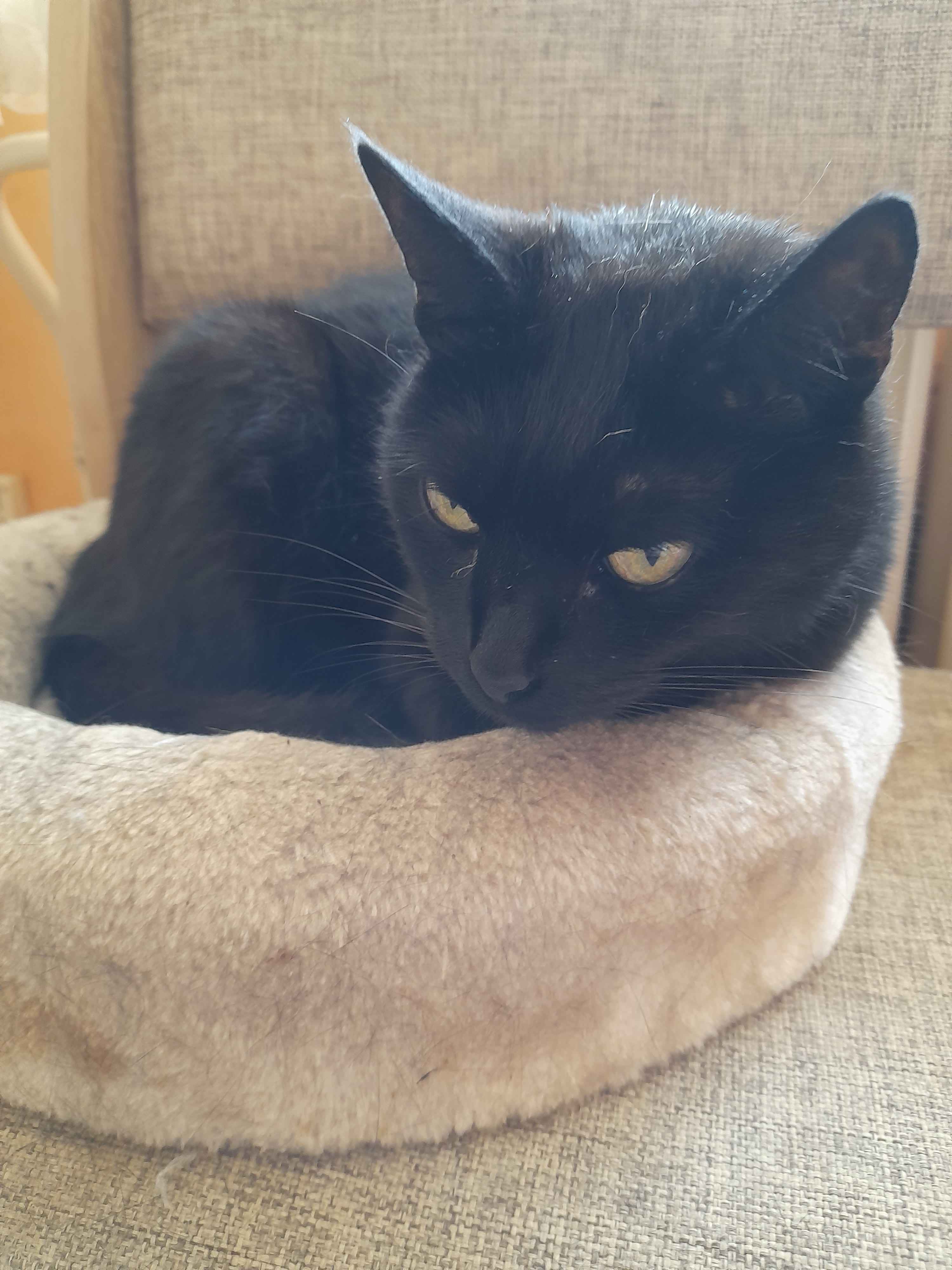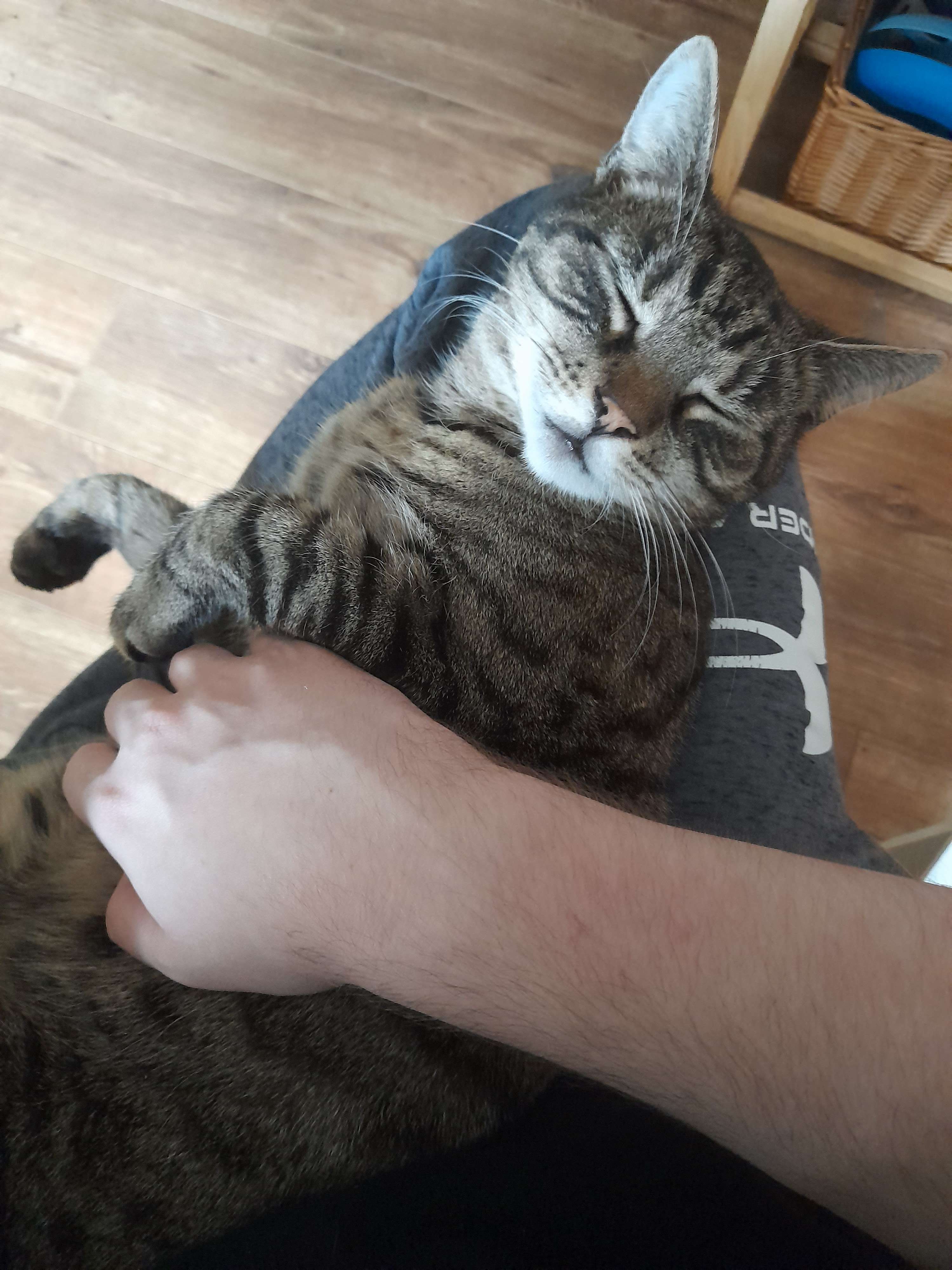Smol cuddly ball full of mischief and no thoughts; loves head scratches and chilling on my lap when I work.
